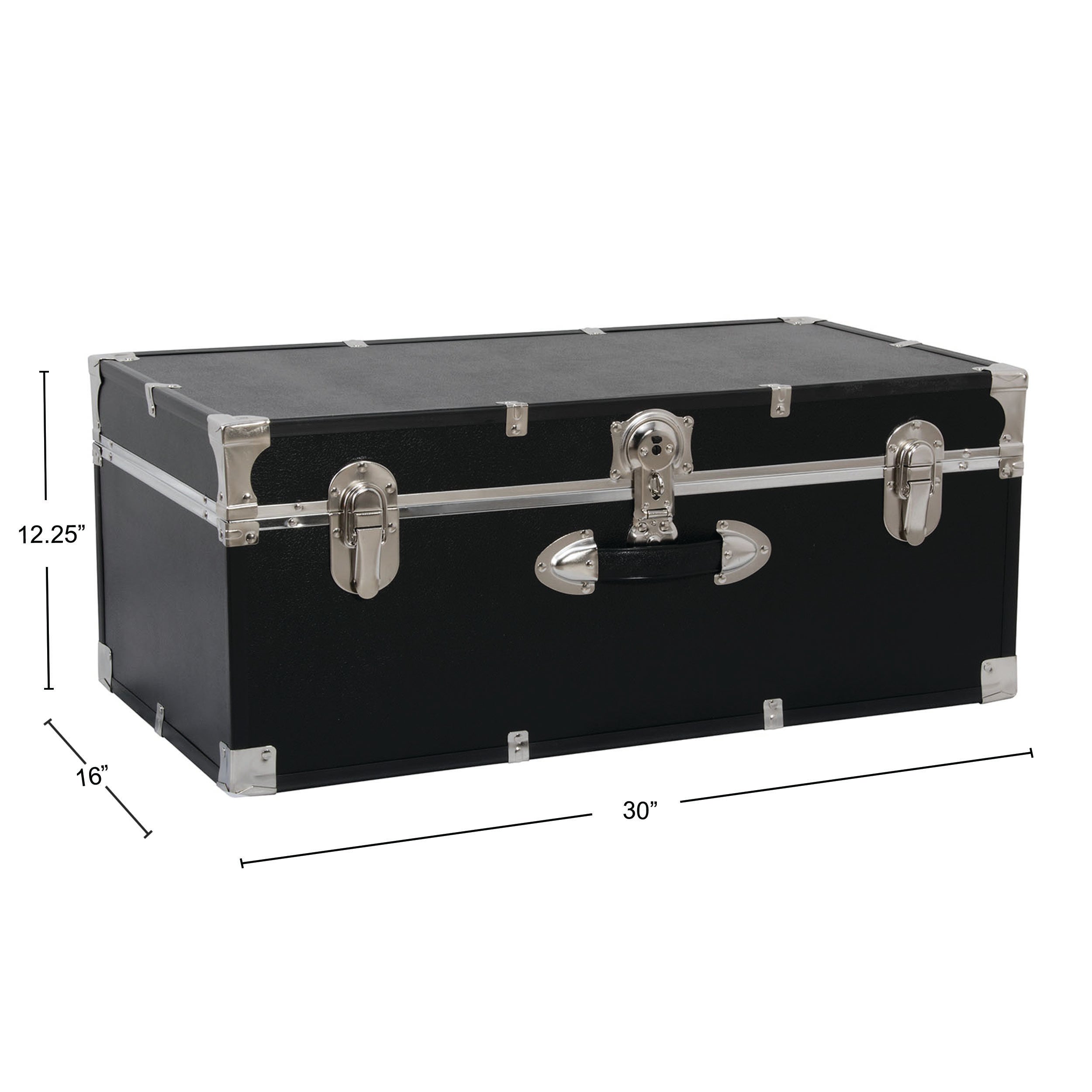 The Seward Classic 30" Trunk is the perfect storage solution for any room in your home. Ideal for small space living or stowing away infrequently used items such as bulky linens, seasonal clothing or decorations, memorabilia, and keepsakes. This trunk features nickel hardware and corner guards with black binding. The dual lock-down latches help keep dust and moisture out. The push-button center latch has an optional locking feature (includes keys). For additional security, add a padlock. The trunk also has one front handle for easy moving.