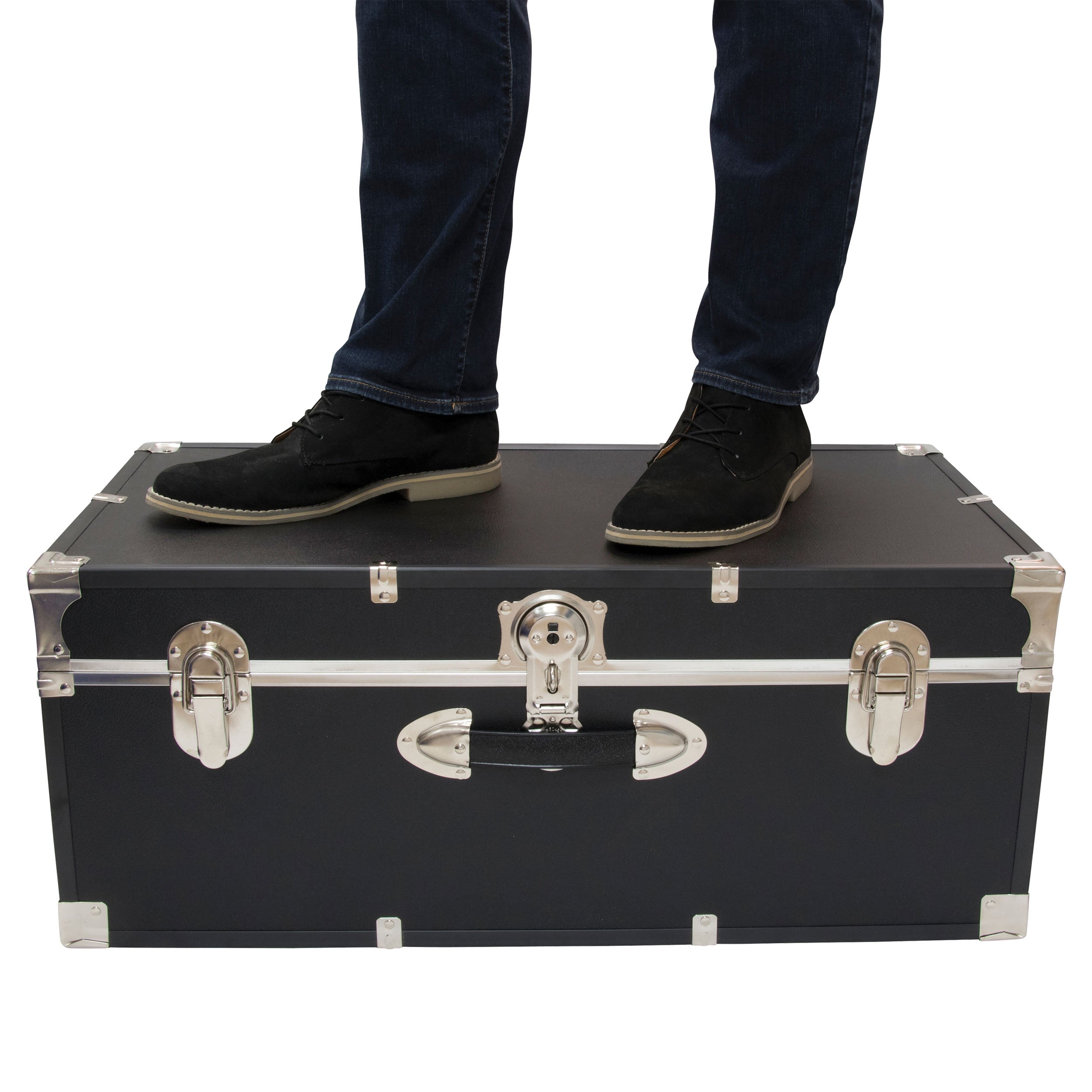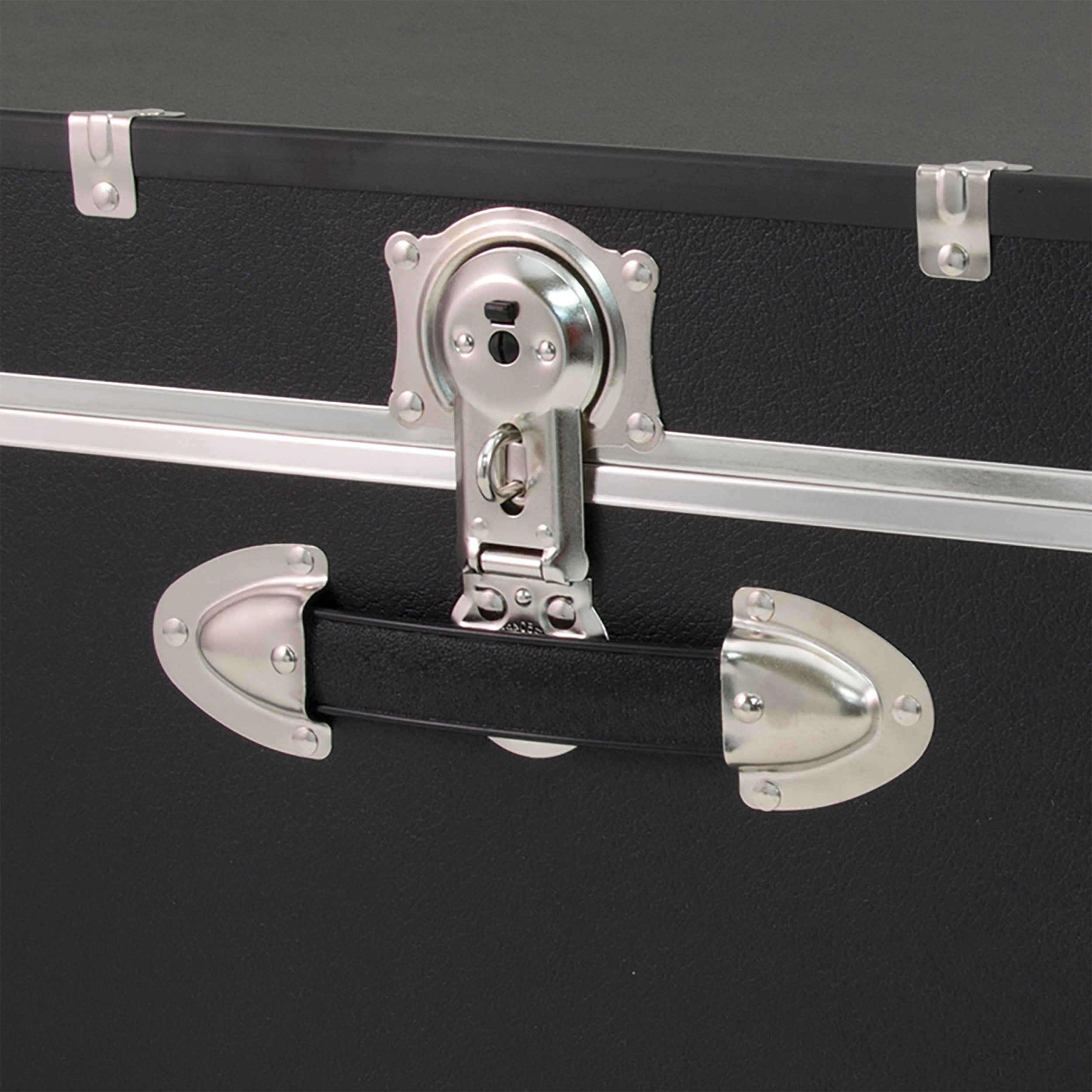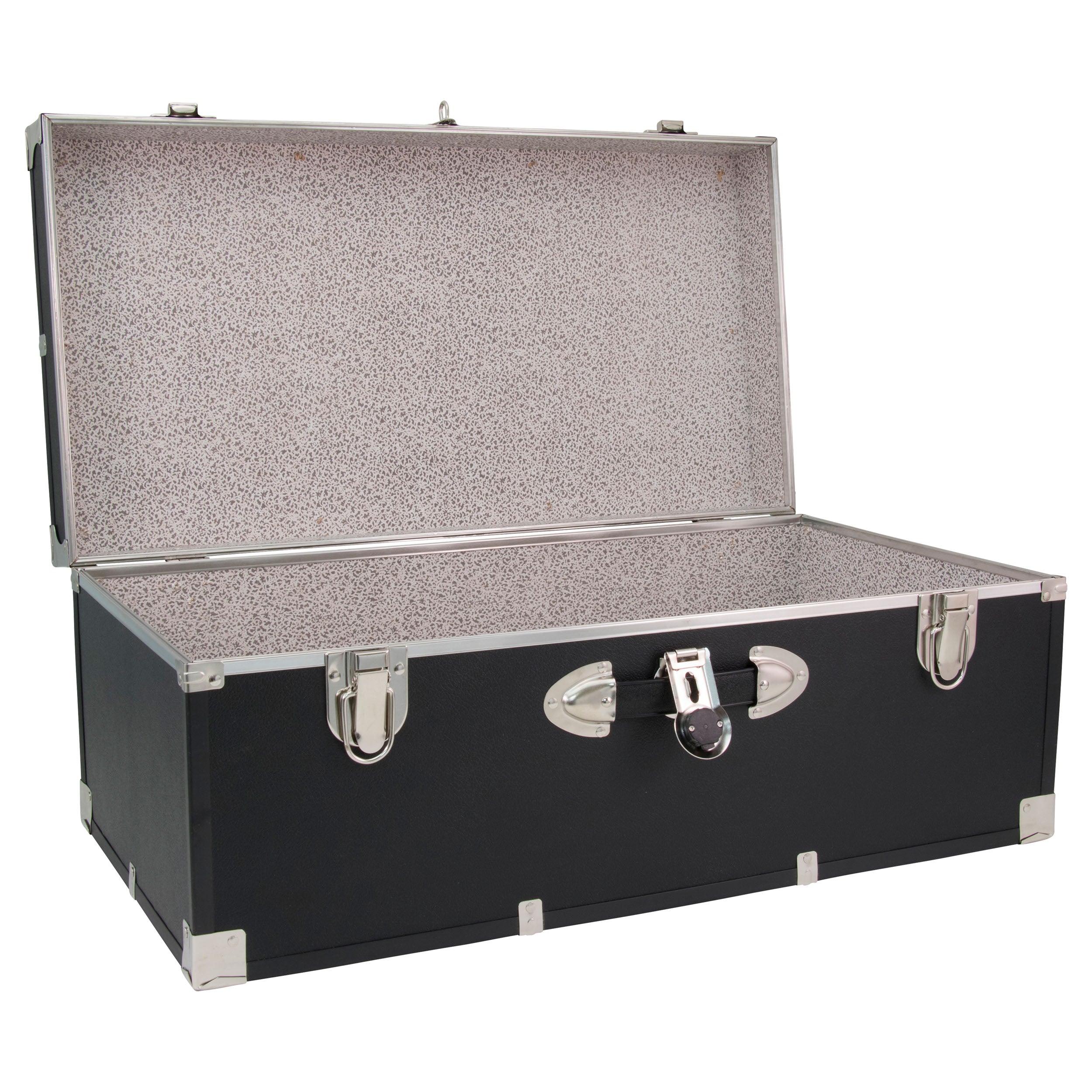 The Seward Essential 30" Trunk is the perfect storage solution. Dorm dwellers can easily store bulky seasonal clothing, textbooks, and more in the must-have trunk. This trunk features classic nickel hardware with black binding and nickel corner guards. The dual lock-down latches help keep dust and moisture out. The push-button center latch has an optional locking feature (includes keys). For additional security, add a padlock. The trunk also has one front handle for easy moving.