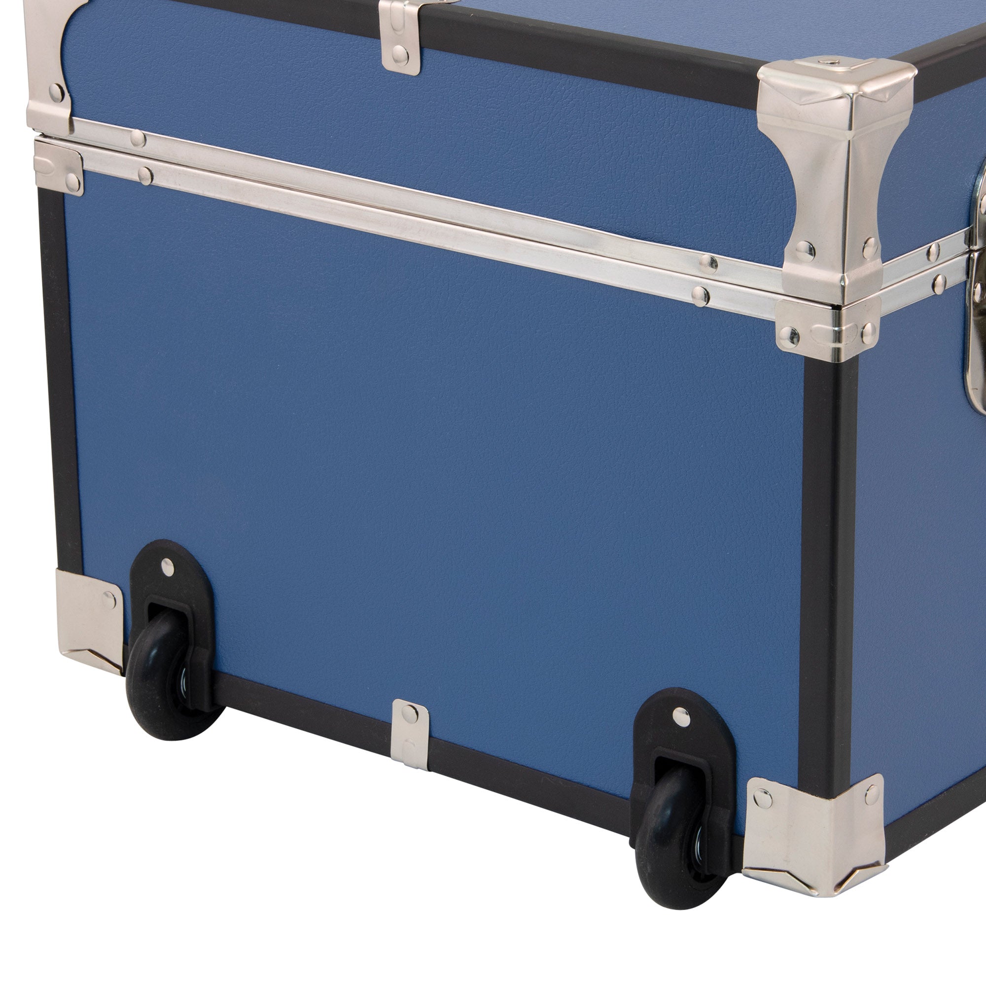 The Seward Explorer 30" Trunk is the perfect storage solution for any room in your home and on the go. This wheeled trunk is a camper's ideal packing solution as well as a dorm dweller's mobile furniture piece with ample storage. It features classic nickel hardware with black binding and nickel corner guards. The dual lock-down latches help keep dust and moisture out. The push-button center latch has an optional locking feature (includes keys). For additional security, add a padlock. The trunk also has one front handle, and one side handle for easy moving.